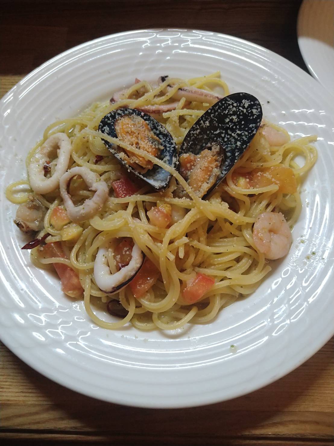 海鮮バジルソースのパスタ