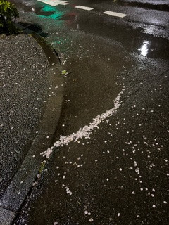 そして雨で桜が散り始めたので道路には桜の花びらが😌