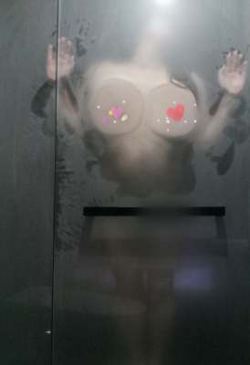 ガラスにおっぱい押し付けたり