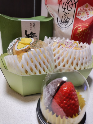 名産のお団子にお米や果物にスイーツいつもごちそう様です😊🍡🍐