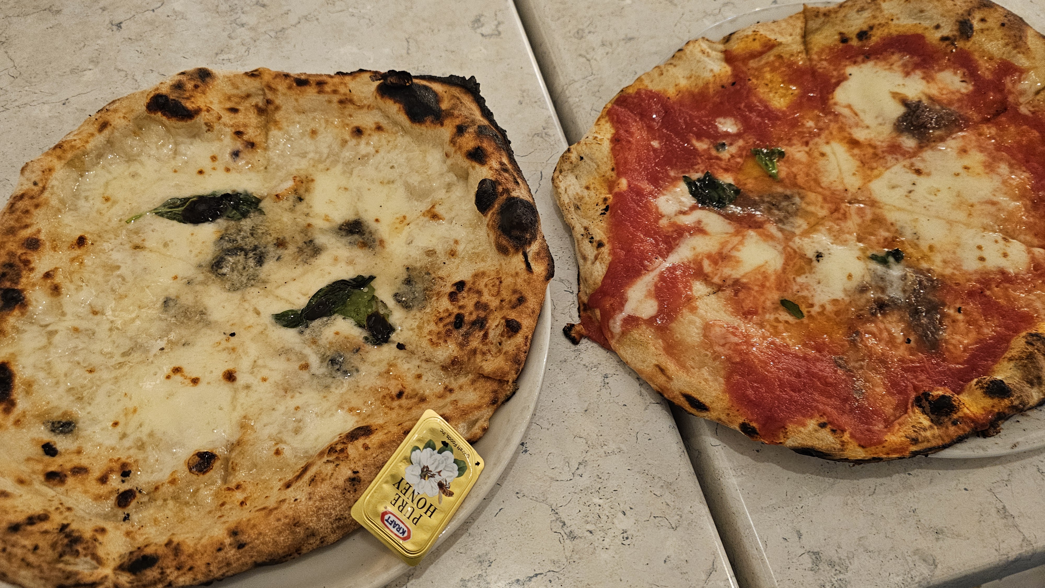 1人1枚注文がマストのお店だったので私はハチミツをかけて食べるあまじょっぱいピザを。同僚はトマトとアンチョビのピザを注文してシェアして食べました🍕